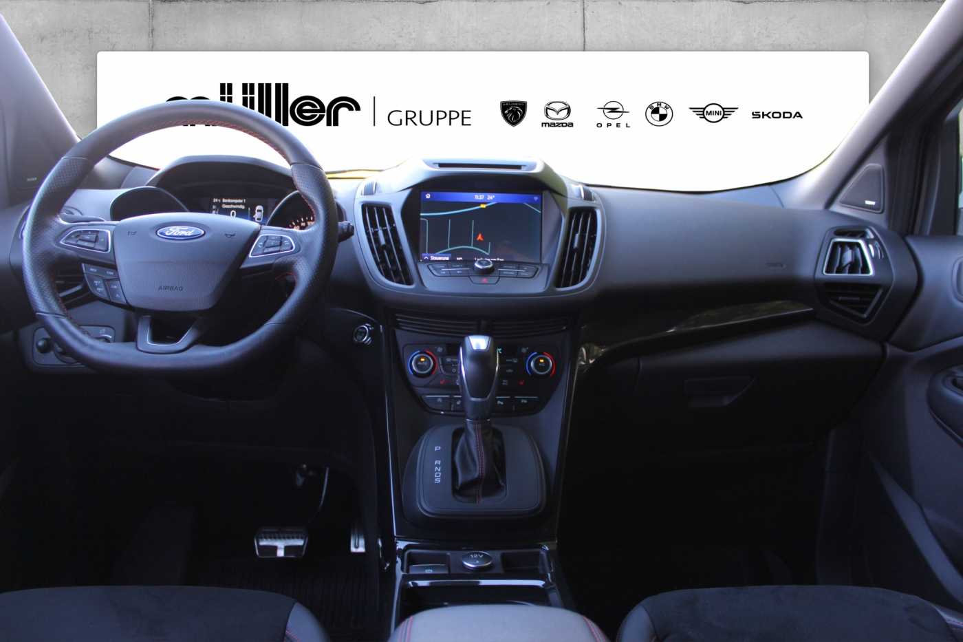 - Lederlenkrad mit roten Ziernähten